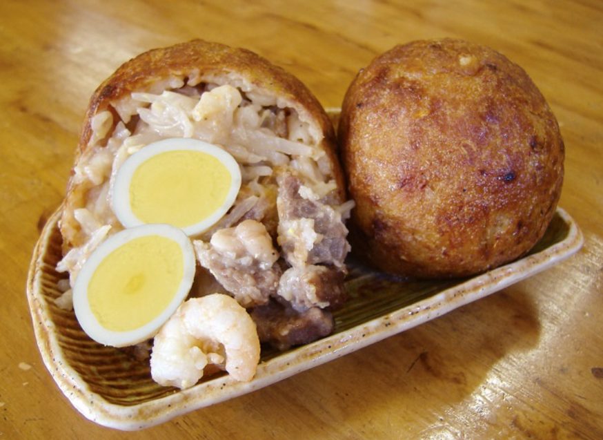 外はカリッと香ばしく、中はふんわりと柔らかい生地で、飛騨牛、小海老、うずら卵、もやしなど具材がぎっしりと詰まっています。