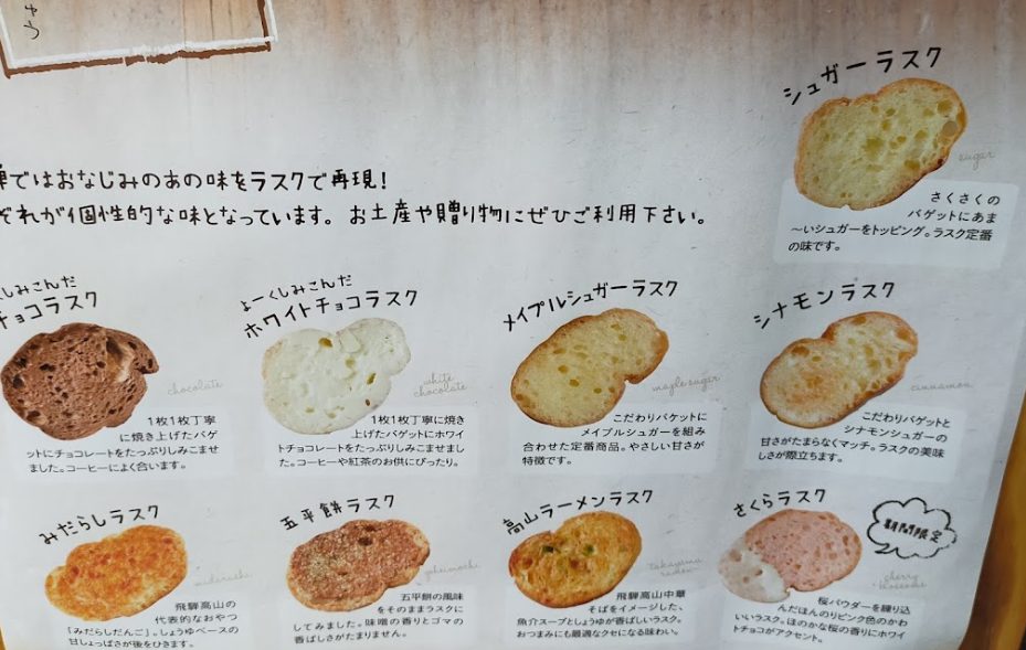 他にも「高山ラーメンラスク」や「五平餅ラスク」など、ご当地フレーバーが豊富に揃っています。
