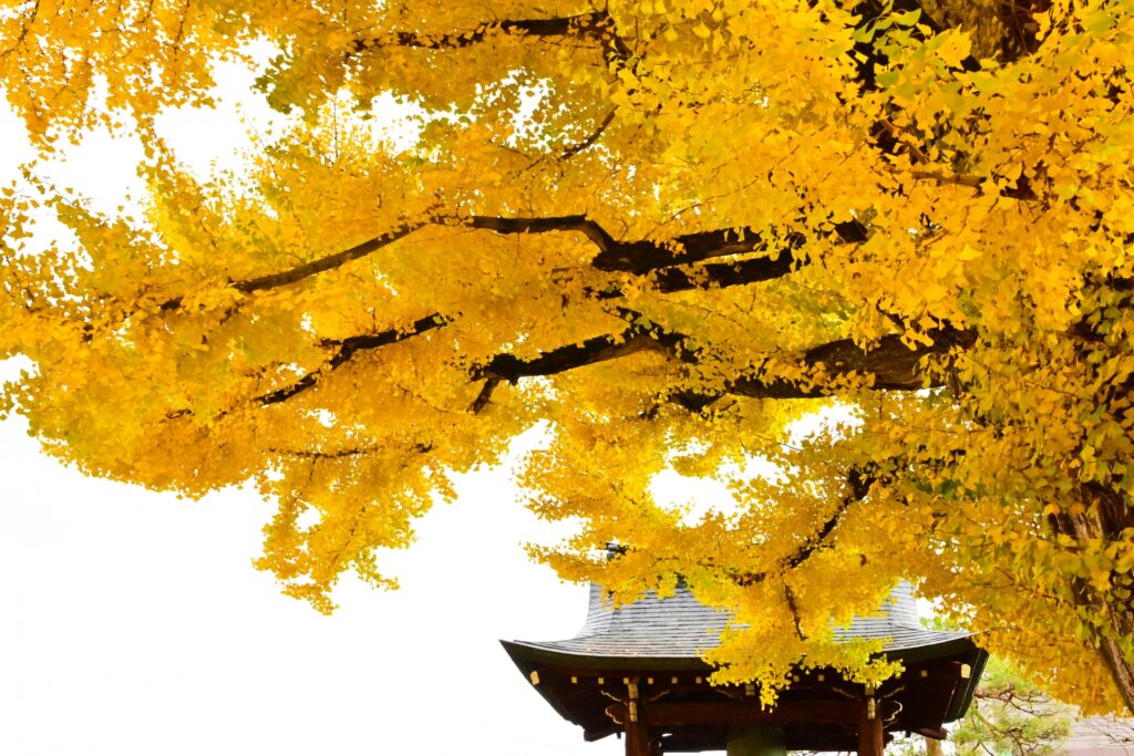 高山駅から徒歩5分という好立地にありながら、荘厳な存在感を放つのが「飛騨国分寺」。境内にそびえる樹齢1200年の大イチョウは、高さ27mにもおよぶ巨木で、秋には黄金色に輝き町全体を染め上げます。この木には悲しい娘の伝説が残されており、今も地元の人々に語り継がれています。葉がすべて落ちると「雪が降る合図」とされるなど、季節の節目を告げる象徴でもあります。