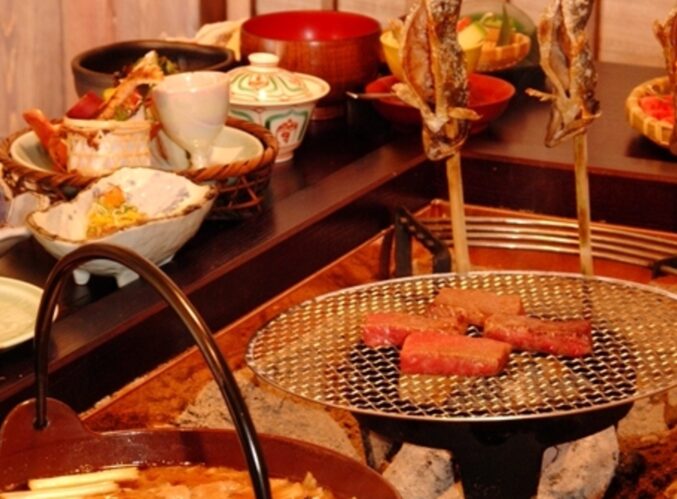 囲炉裏で焼く楽しさを体験できる特別な食事