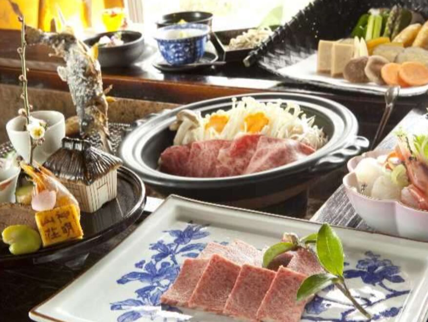 特製の割下で煮込む飛騨牛のすき焼き は、口の中でとろけるような極上の味わい。