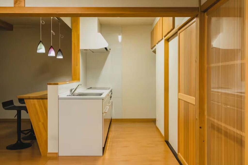 機能的な対面キッチンや掘りごたつも備え、家族や友人での滞在にもぴったり。