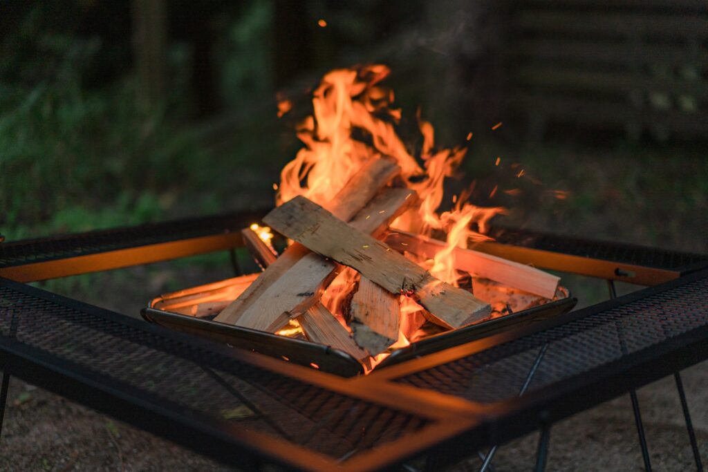 薪、焚火台、着火剤などすべて揃ったセットで、プライベート焚火を体験。マシュマロを焼いて楽しむのもおすすめ。 - 火おこし体験