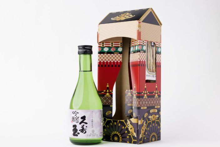 岐阜県産の小鮎油漬けとセットになった化粧箱入りは、お酒好きの方への贈り物に最適です。