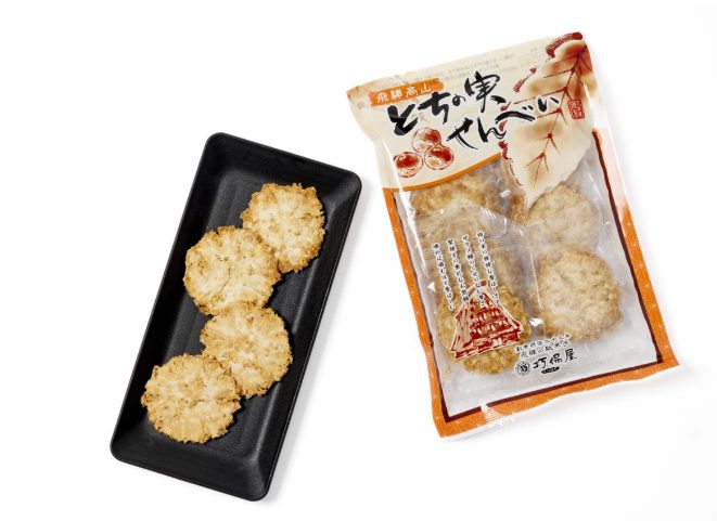 「とちの実せんべい」は、職人たちの技と飛騨地方の自然が調和した伝統菓子です。