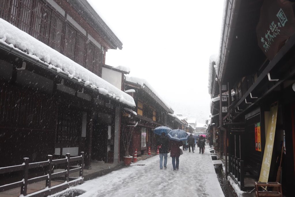 雪の多い高山市では、車で訪れる場合はスタッドレスタイヤの装着が必須です。